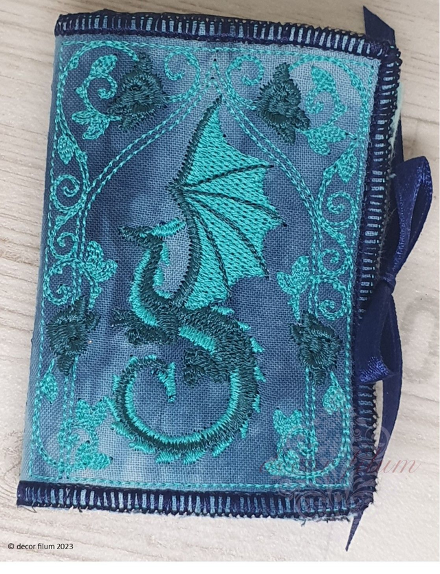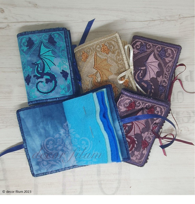 besticktes Nadelmäppchen mit Drachen - handgefertigtes Nadelbuch - Fantasy, Mittelalter