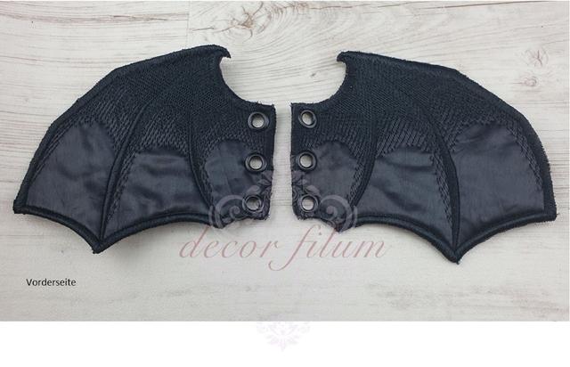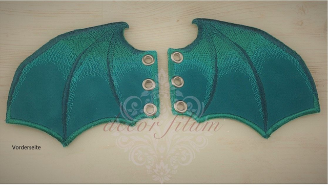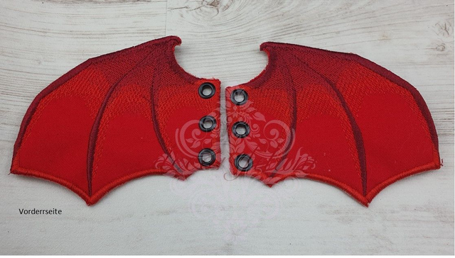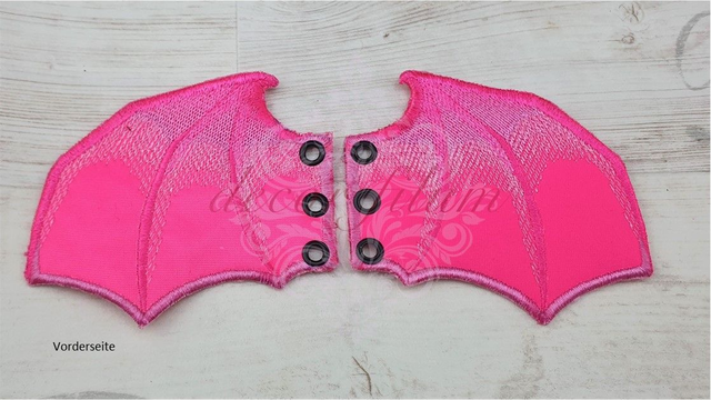 Manche Flügel haben kleine Schönheitsfehler wie sichtbares Stickvlies, aufgeschnittene Fädchen o.ä. Sie sind genau so schön, haltbar und auffällig, aber ich habe sie für euch reduziert.